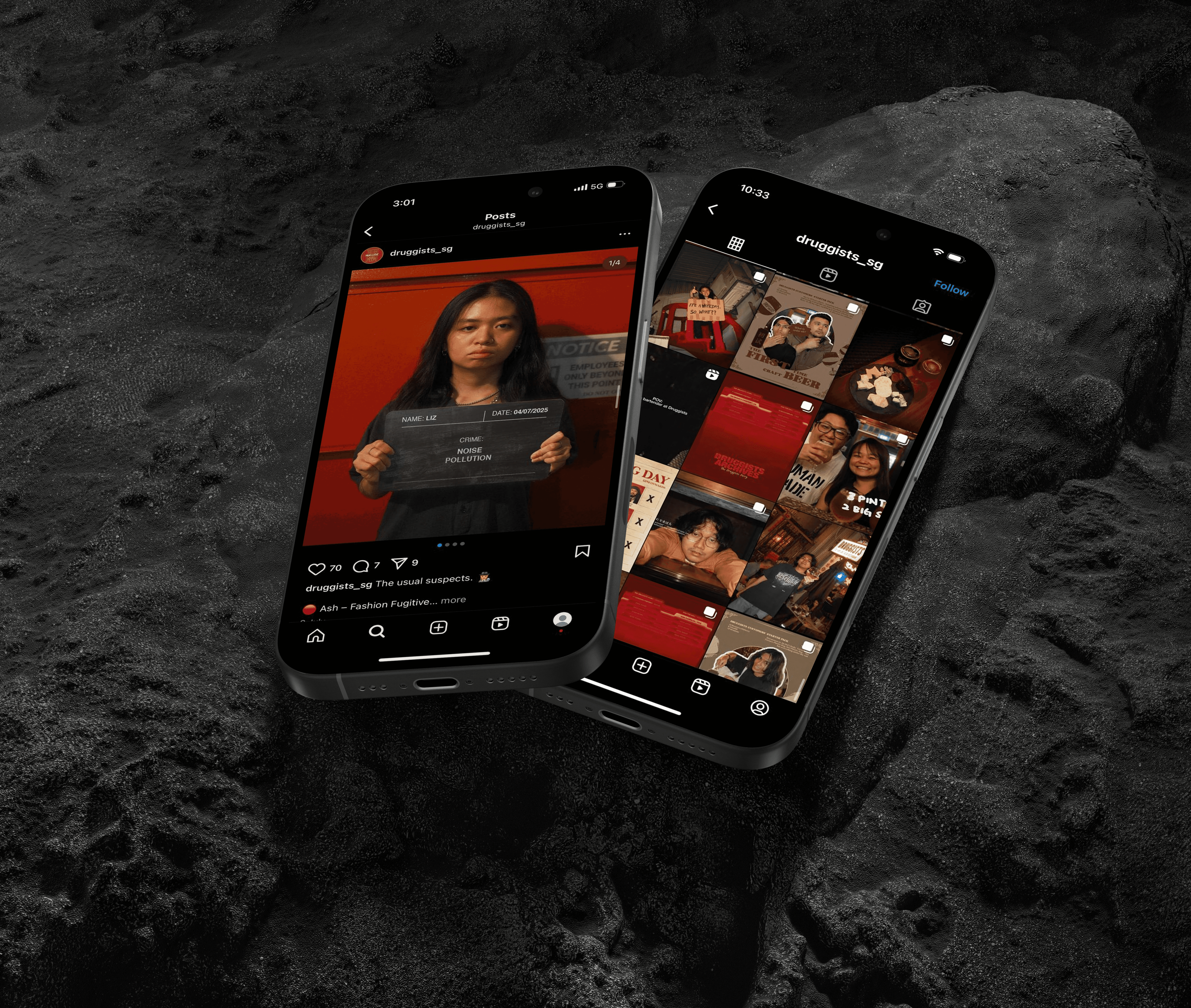 Navigating through tough crowds, busy times & staff that were constantly on-the-go and most of all, slotting ourselves in the right places to avoid intimidating a crowd that was just there to have fun, not perform. This weekly cadence and consistency allowed for us to not only build a bond with the Druggists team, but the people that frequent and also to create a library of collaterals that were simply human and truly Druggists.